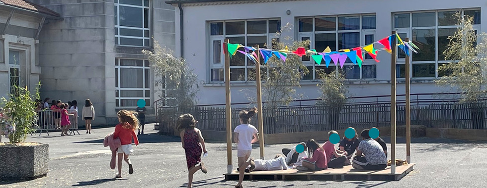 Les expérimentations nous permettent de tester différentes combinaisons d'aménagements et d'organisation des espaces, de les observer, de les analyser et d'obtenir un retour direct de la part des usager.e.s (adultes et enfants), afin de réaliser par la suite des propositions adaptées au terrain. Les agent.es du service technique de la ville ont fourni un très important travail pour préfigurer les espaces : construction d'une cabane, paillage, copeaux, création d'espaces calmes, tracés terrain etc.